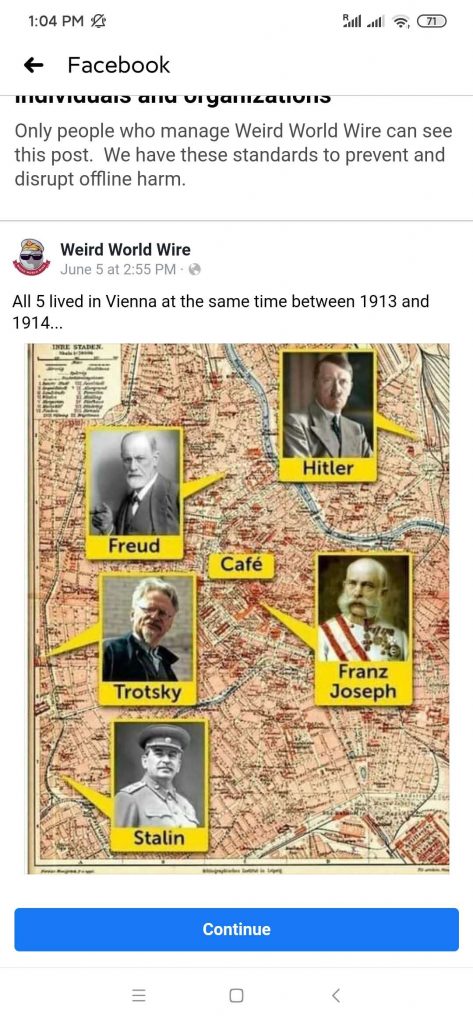 As to why it got flagged, we are at a bit of a loss as there are plenty of Hitler lovers (which we are not) on Facebook, so we can only guess the reasons. Was it a Stalin/Trotsky thing? Are the Facebook police secretly Trots, or worse still tankies? Or are they secretly in love with their mothers and therefore have a hard-on for anything Freud related?